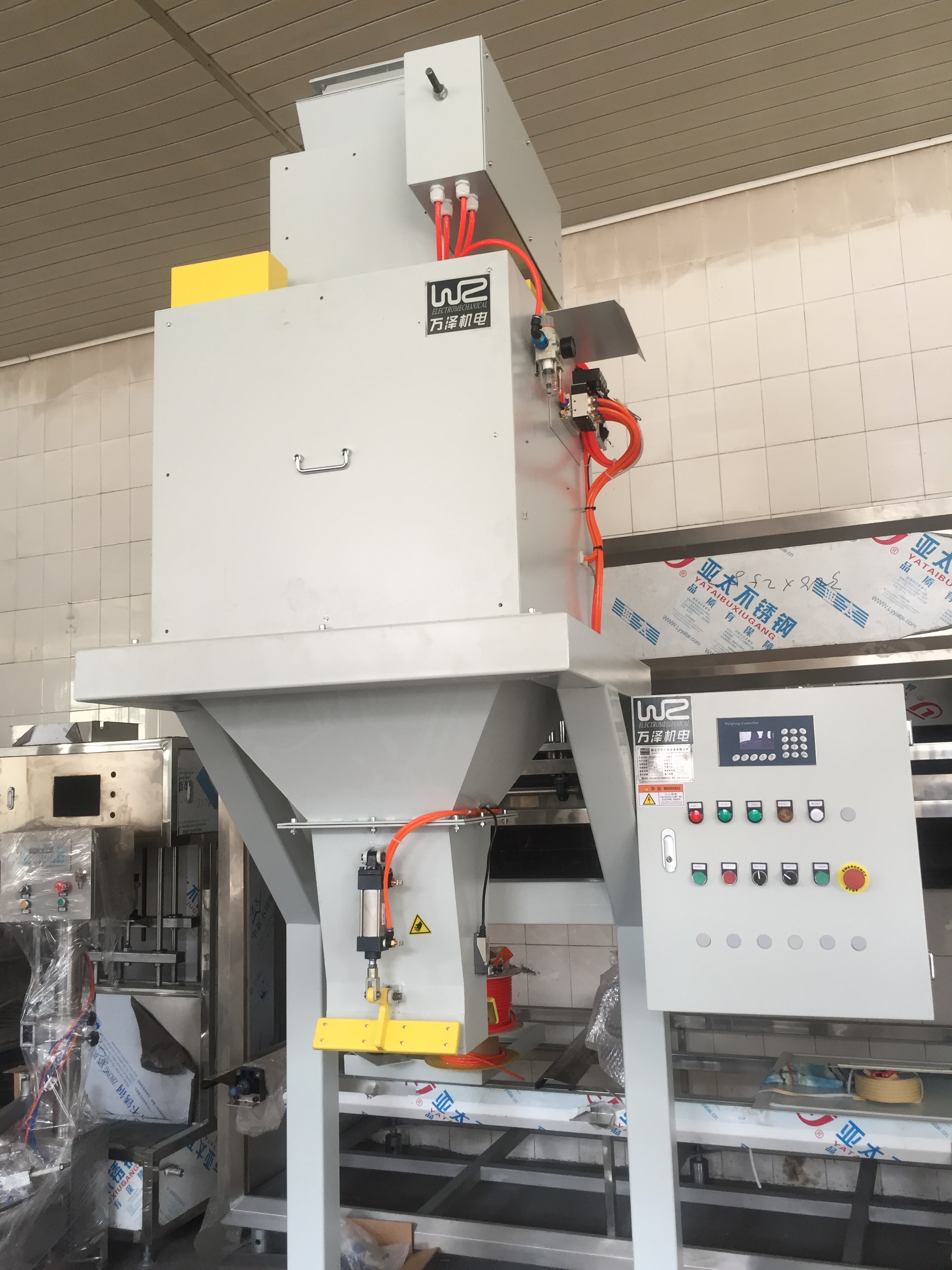 DCT50-CF-FK型閥口閥口袋包裝機采用內(nèi)部稱量斗自流式凈重計量,內(nèi)部稱量斗計量可以防止外部人為及環(huán)境干擾產(chǎn)生的誤差,同時可以消除物料落差產(chǎn)生的沖擊干擾。此型包裝機灌裝口既可為閥口袋灌裝,又可為敞口袋灌裝,灌裝完成后由氣缸自動將袋子推出。此型包裝機適用于流動性較好的顆粒物料及精體物料,不適用于粉粒。